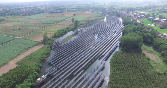 桃源湘成光伏电站由桃源县湘成光伏电力有限公司投资建设,,,,,,,,电站位于湖南省桃源县,,,,,,,,装机容量40MW,,,,,,,,占地面积为1300亩,,,,,,,,为公司首个渔光互补光伏电站。。。。。。电站于2017 年开工建设,,,,,,,,同年6月建成并网投运,,,,,,,,该电站是公司首个接纳双玻组件的电站,为后续再水面或湿润情形的组件手艺选择涤讪了手艺基础。。。。。。