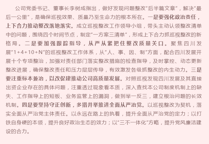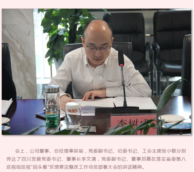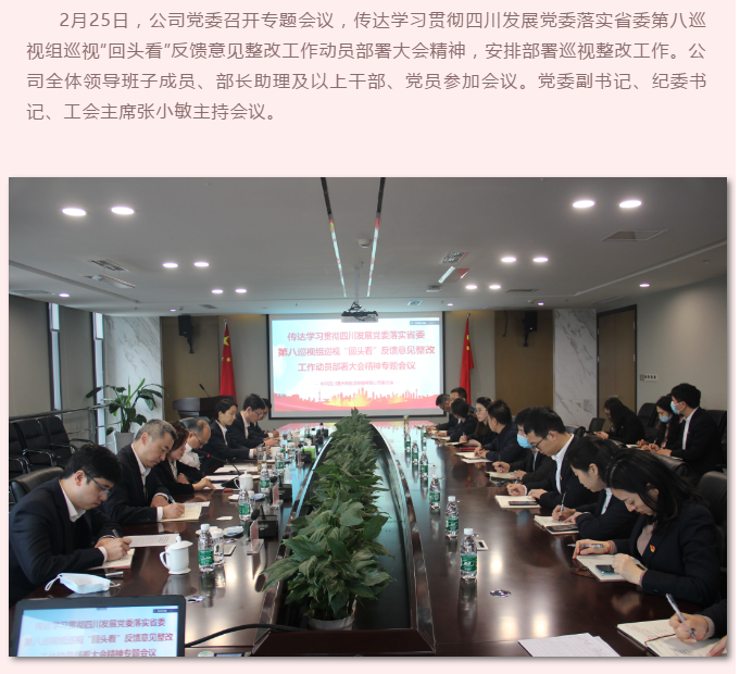 公司党委转达学习贯彻四川生长党委落实省委第八巡视组巡视“转头看”反响意见 整改事情发动安排大会精神