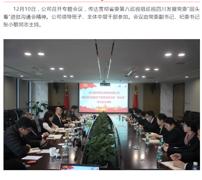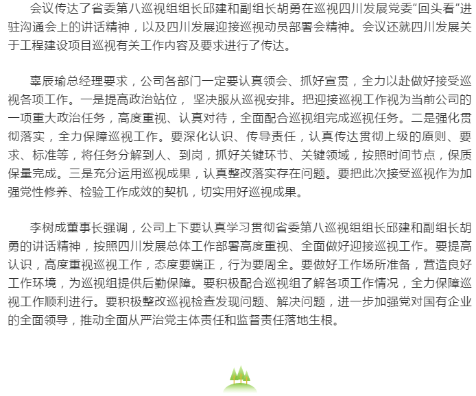 公司召开专题聚会转达贯彻省委 第八巡视组巡视四川生长党委“转头看” 进驻相同会精神