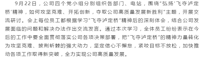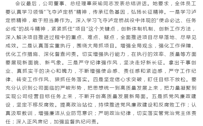 传承“飞夺泸定桥”精神争取公司高质量生长新胜利