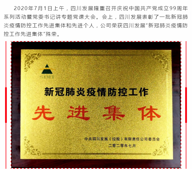 公司荣获四川生长“新冠肺炎疫情防控事情先进整体”声誉称呼