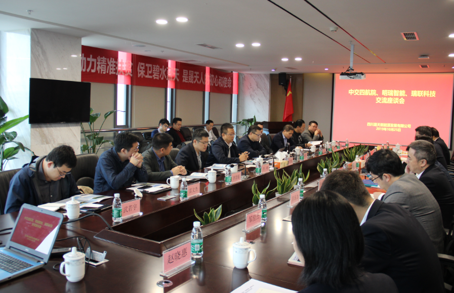 10月25日,, ,,,,, ,中交第四航务工程勘探设计院有限公司投资随处长刘杰晓、安徽明瑞智能科技股份有限公司董事长刘明虎、成都瑞联智慧都会科技合资企业总司理肖维一行莅临公司交流座谈,, ,,,,, ,公司董事、总司理辜辰瑜出席座谈。 。。。。。。
