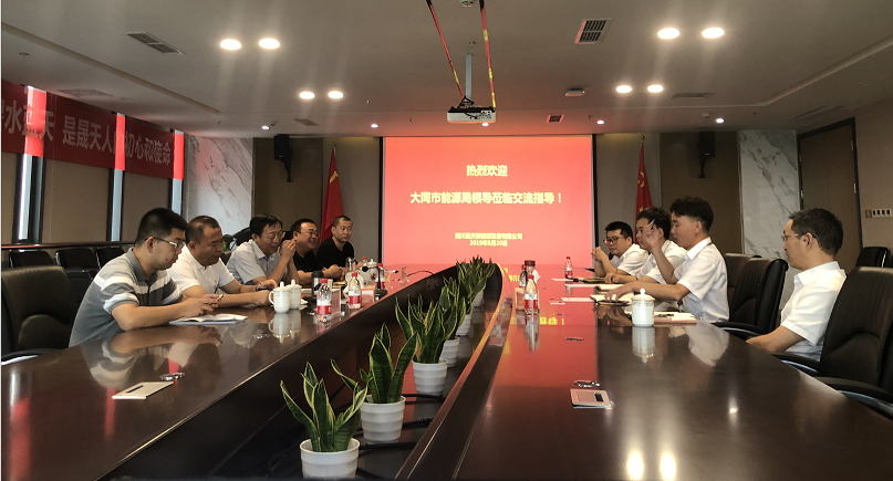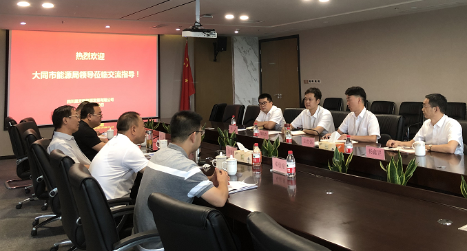 2019年8月20日,,,,,,,大同市能源局局长苏春枝,,,,,,,副局长秦靖成,,,,,,,山西东源电力建设有限公司总司理穆云一行莅临公司座谈交流,,,,,,,公司副总司理左世强热情会见,,,,,,,项目开发部邹佳杰,,,,,,,副部长刘涛、杨鑫罡陪同。。。。。。