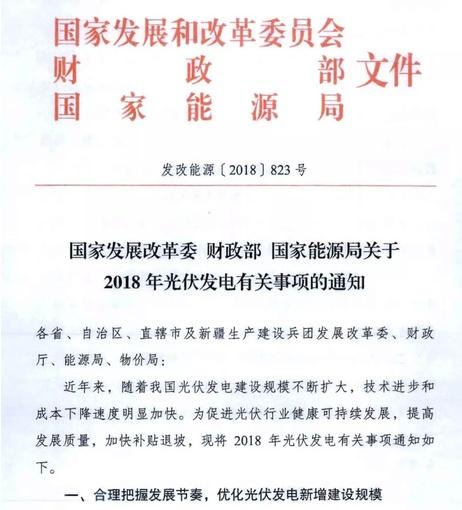 据获悉,,,,,克日国家生长刷新委、财务部、国家能源局以通知的方法宣布的《关于2018年光伏发电有关事项的通知》,,,,,现已首次果真红头文件。。。。。