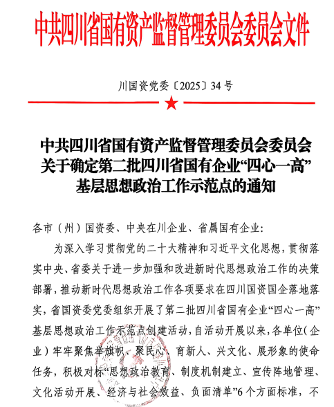 克日,,,,,,四川省国资委党委印发《关于确定第二批四川省国有企业“四心一高”下层头脑政治事情树模点的通知》,,,,,,确定56个单位为第二批四川省国有企业“四心一高”下层头脑政治...
